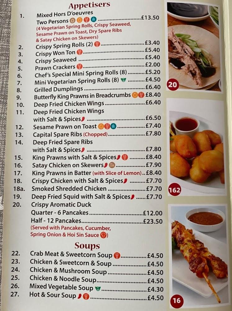 Diamond Garden boasts an extensive menu featuring 188 unique dishes across various categories. Appetizers include popular choices like crispy spring rolls and prawn crackers, ideal for sharing. The soup selection varies from crab meat & sweetcorn to chicken noodle soup, providing comforting options for diners. Vegetarians can explore a specific section dedicated to delectable dishes like fried mushrooms and mixed vegetables in black bean sauce. The menu also highlights several signature items like the chef's special fried noodles and roast duck with plum sauce, showcasing the restaurant's culinary flair. While dishes like sweet and sour chicken balls and chow mein appear frequently on customers' tables, there is truly something for everyone. Desserts like banana fritters ensure a sweet ending to every meal, making each visit a well-rounded experience.